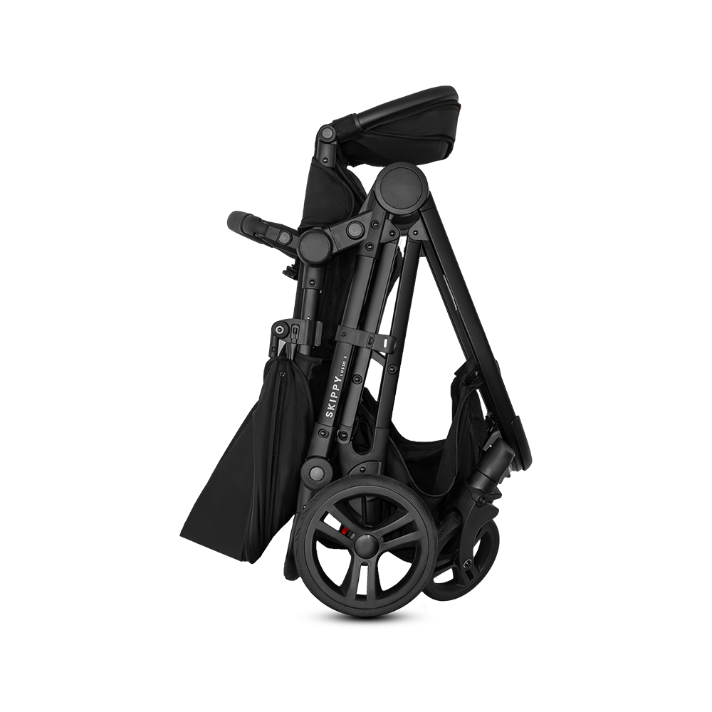 Lusso 3 features a true one-hand fold system that works seamlessly with one or two seats attached. No bending required—its self-standing design keeps the pram upright, making it easier and safer to lift, carry, and store.