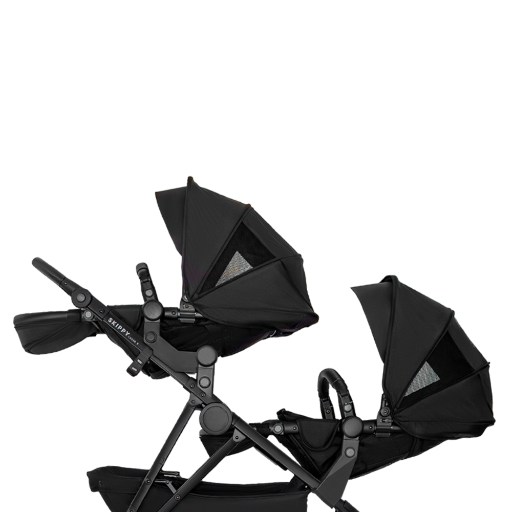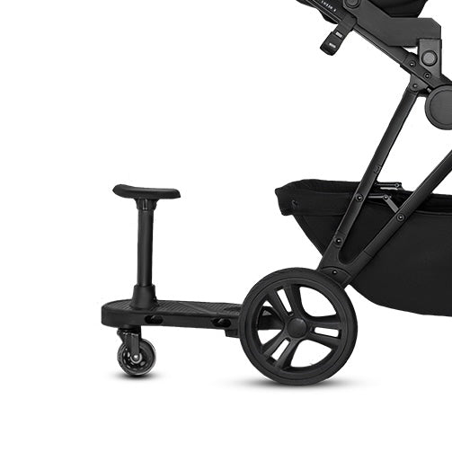 A smart, spacious double pram designed to keep your family moving. With the integrated toddler board, your little one can choose to sit, stand, or ride along. Making every outing smoother, easier, and a little more fun.